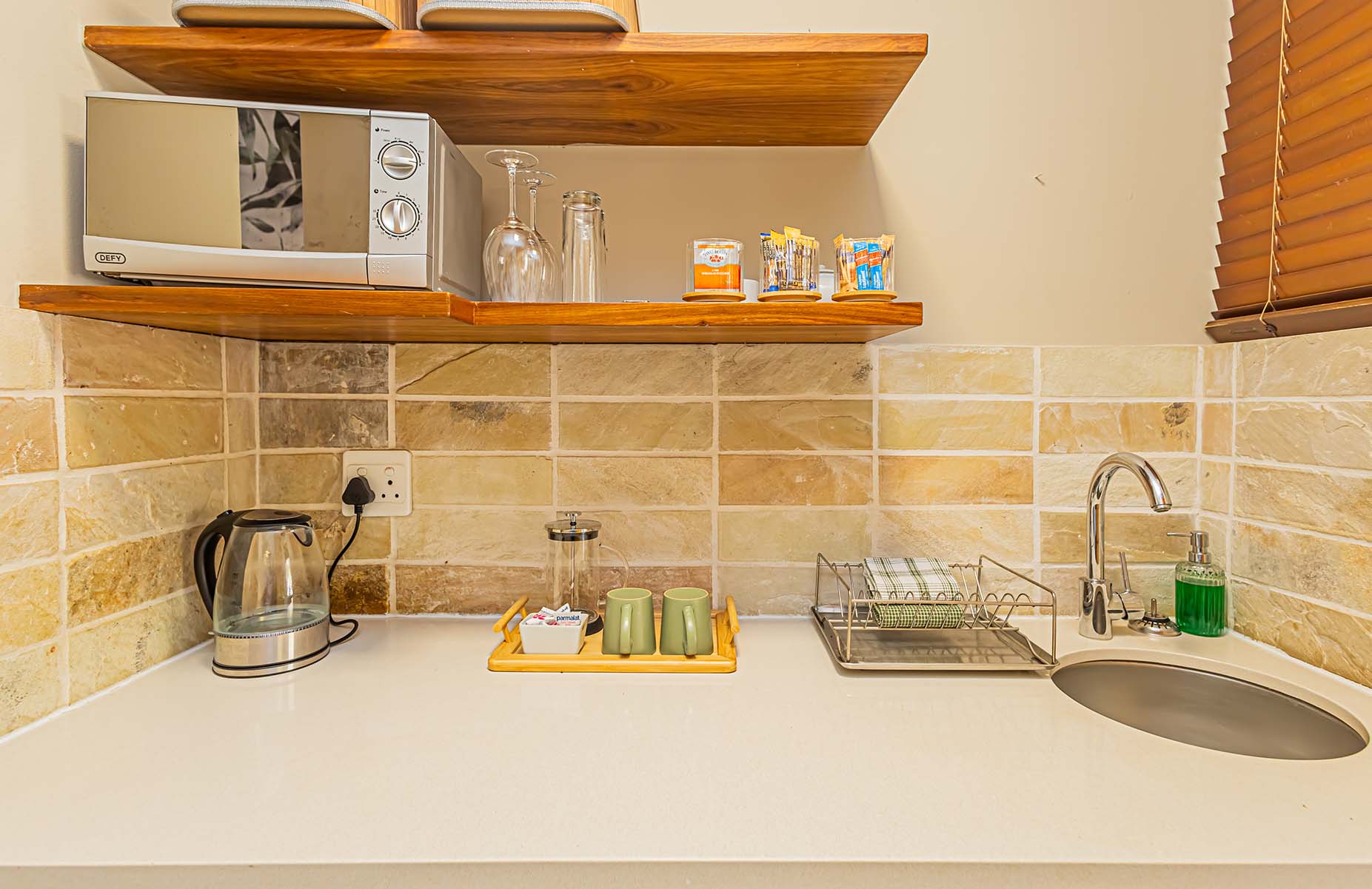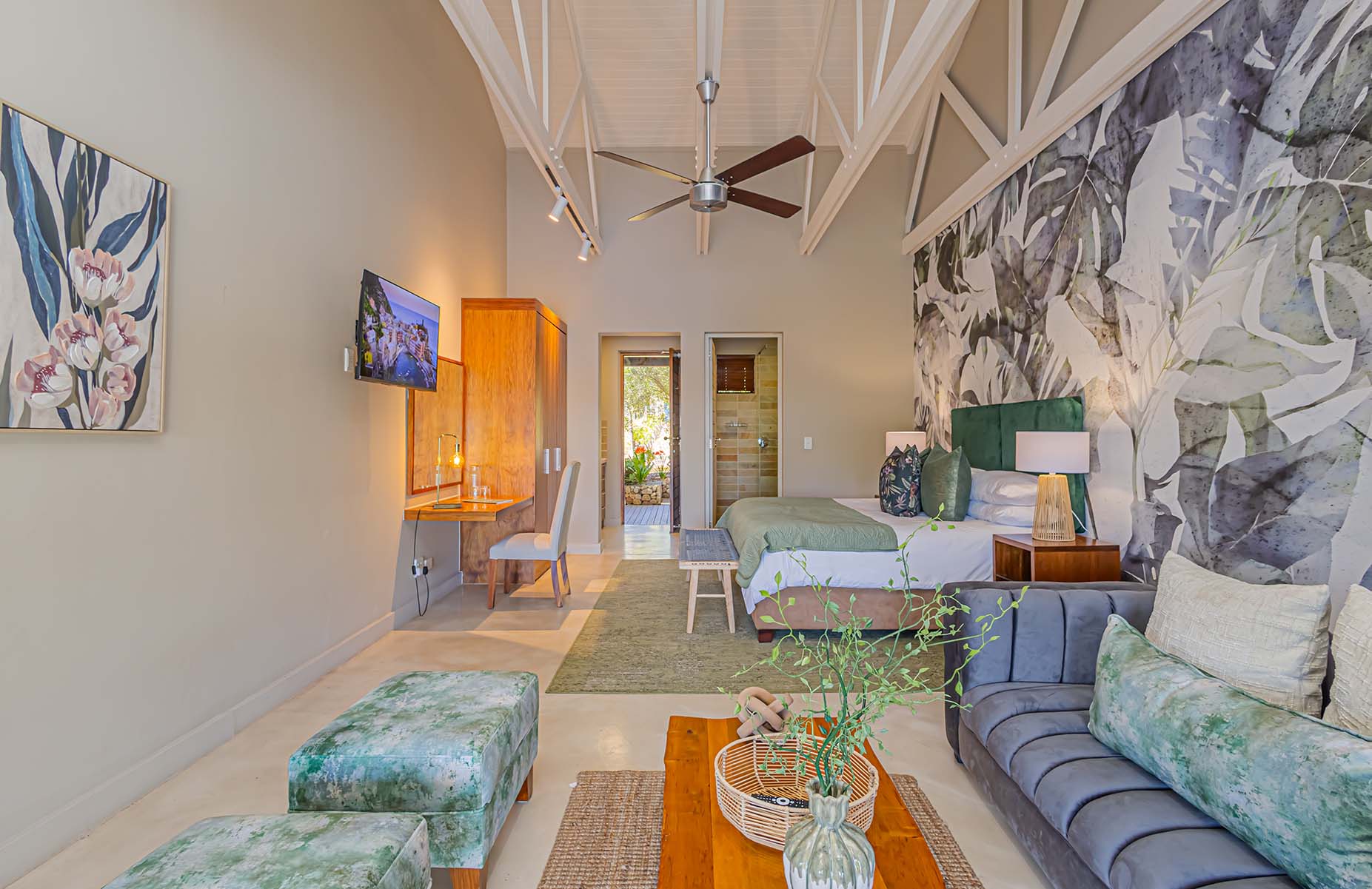 This room is perfect for two guests and includes a king-size bed, private bathroom, kitchenette, and living space, providing the ideal setting for relaxation and rejuvenation. Wake up and step onto your private balcony to take in stunning views of the lake. All rooms have sliding doors that lead to a veranda with an amazing view of Table Mountain!